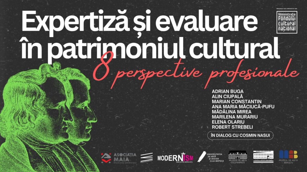 Proiectul „Expertiză și evaluare în patrimoniul cultural: 8 perspective profesionale” a fost realizat de Asociația Maia în parteneriat cu Modernism.ro, PostModernism Museum, Universitatea de Arte și Design Cluj-Napoca, Muzeul de Artă Baia Mare, Muzeul de Artă Brașov și Muzeul de Artă Cluj.